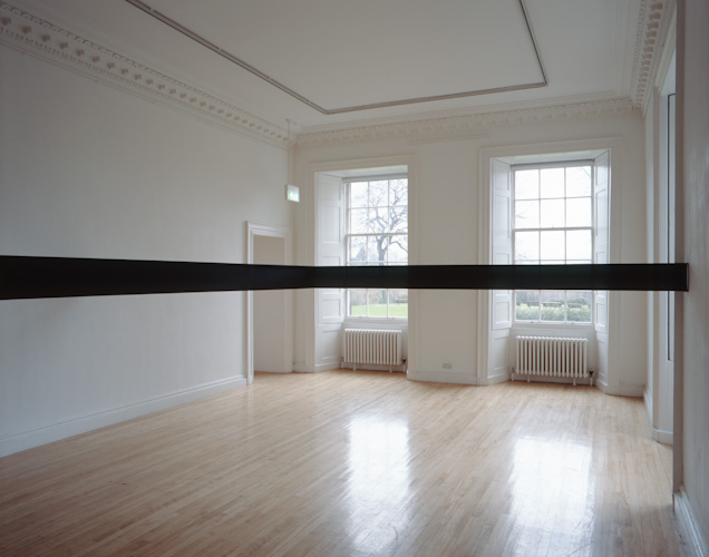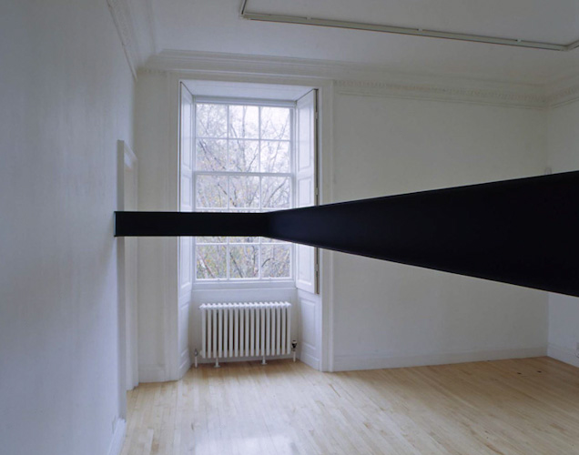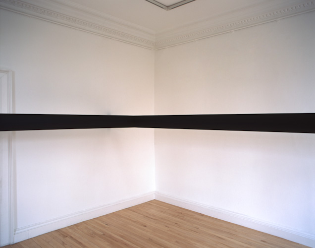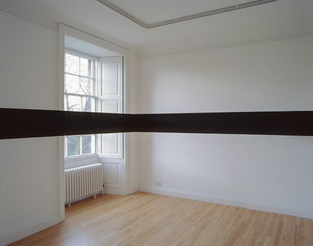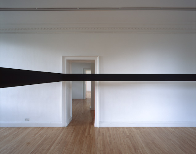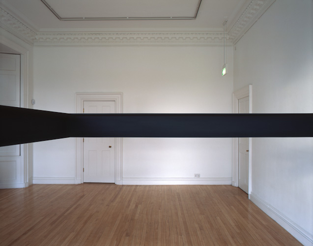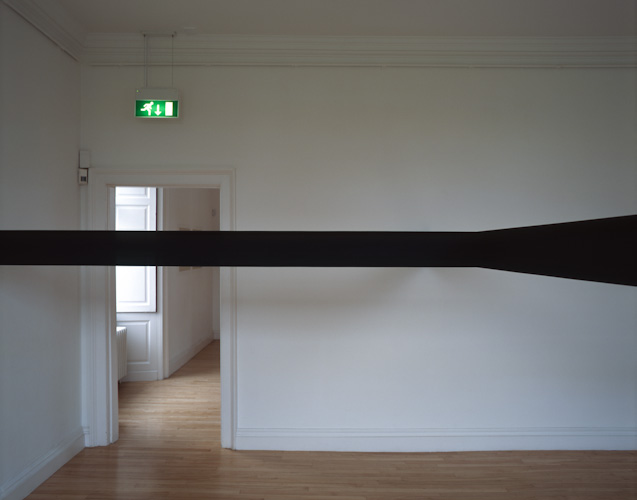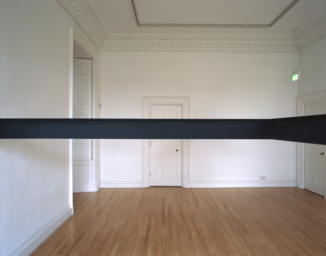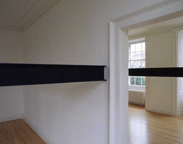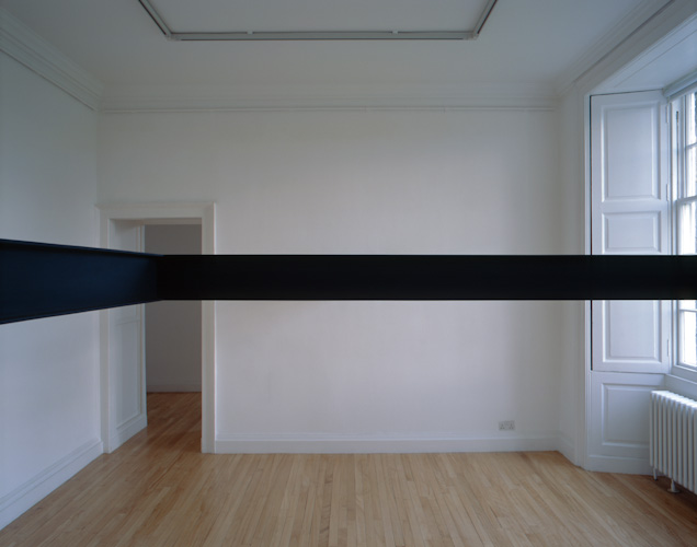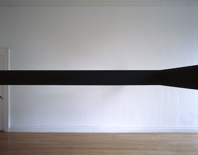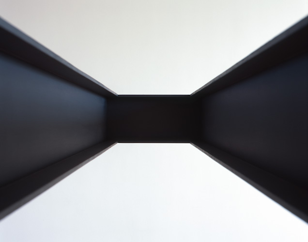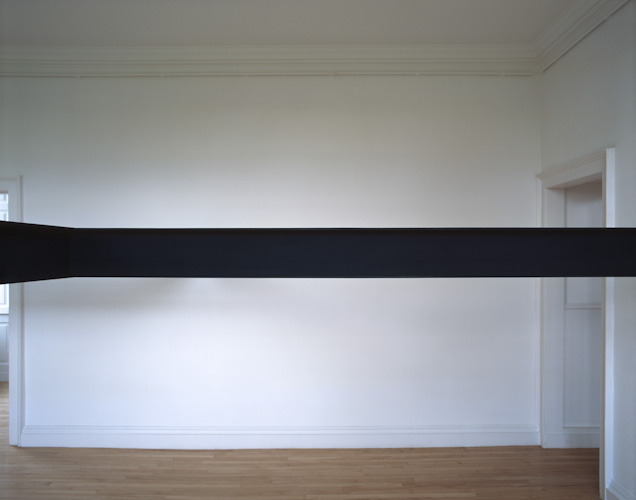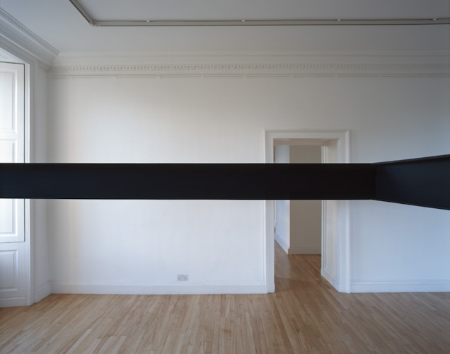 Painted plywood beam [profile: 10 x 16.5 cm], steel brackets. Dimensions variable.