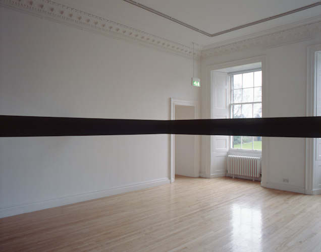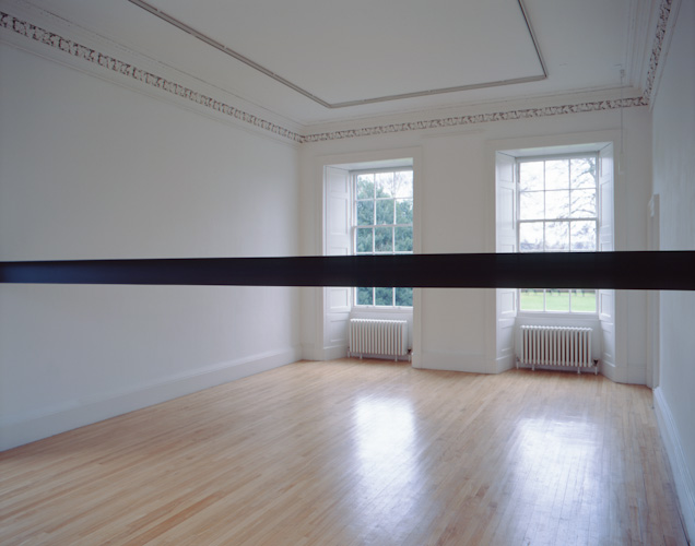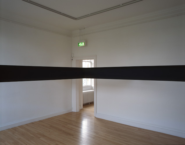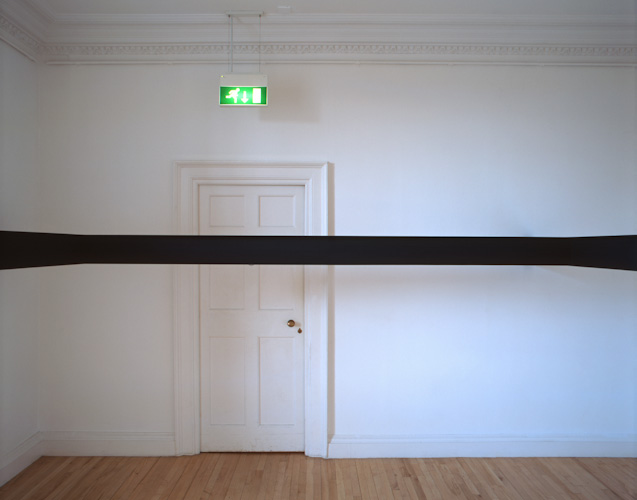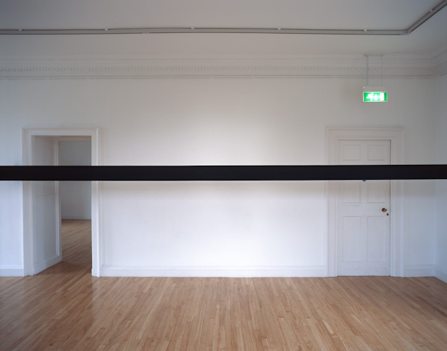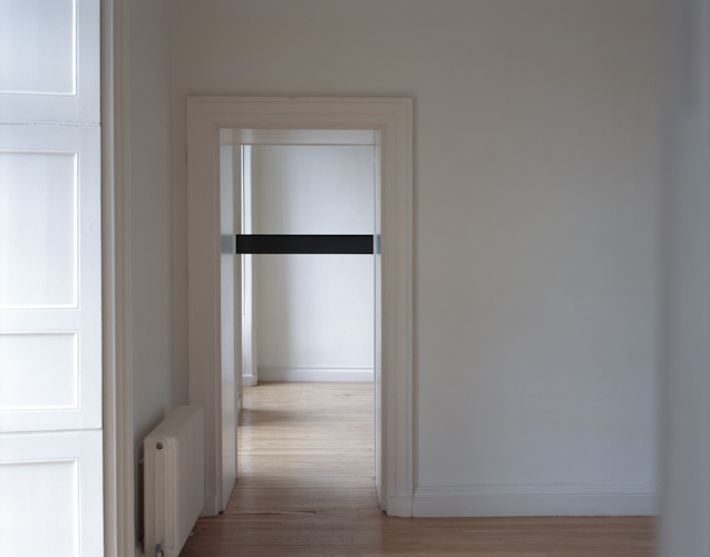Constructed beams positioned at eye level divide the space and the bodies of those populating it. The viewer's vision is obstructed and their movement frustrated.